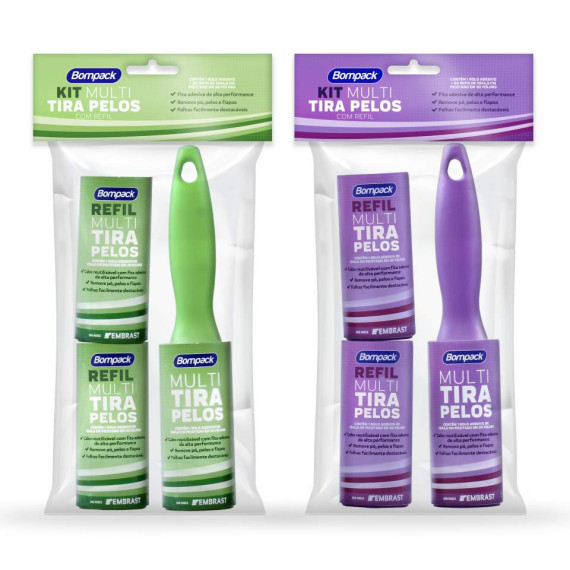 Mantenha suas roupas, sofás, camas e carros livres de pelos, fiapos e poeira com o Kit Multi Tira Pelos da Bompack! Prático, eficiente e super versátil, esse kit é ideal para quem convive com pets ou quer manter tudo sempre limpo e apresentável.